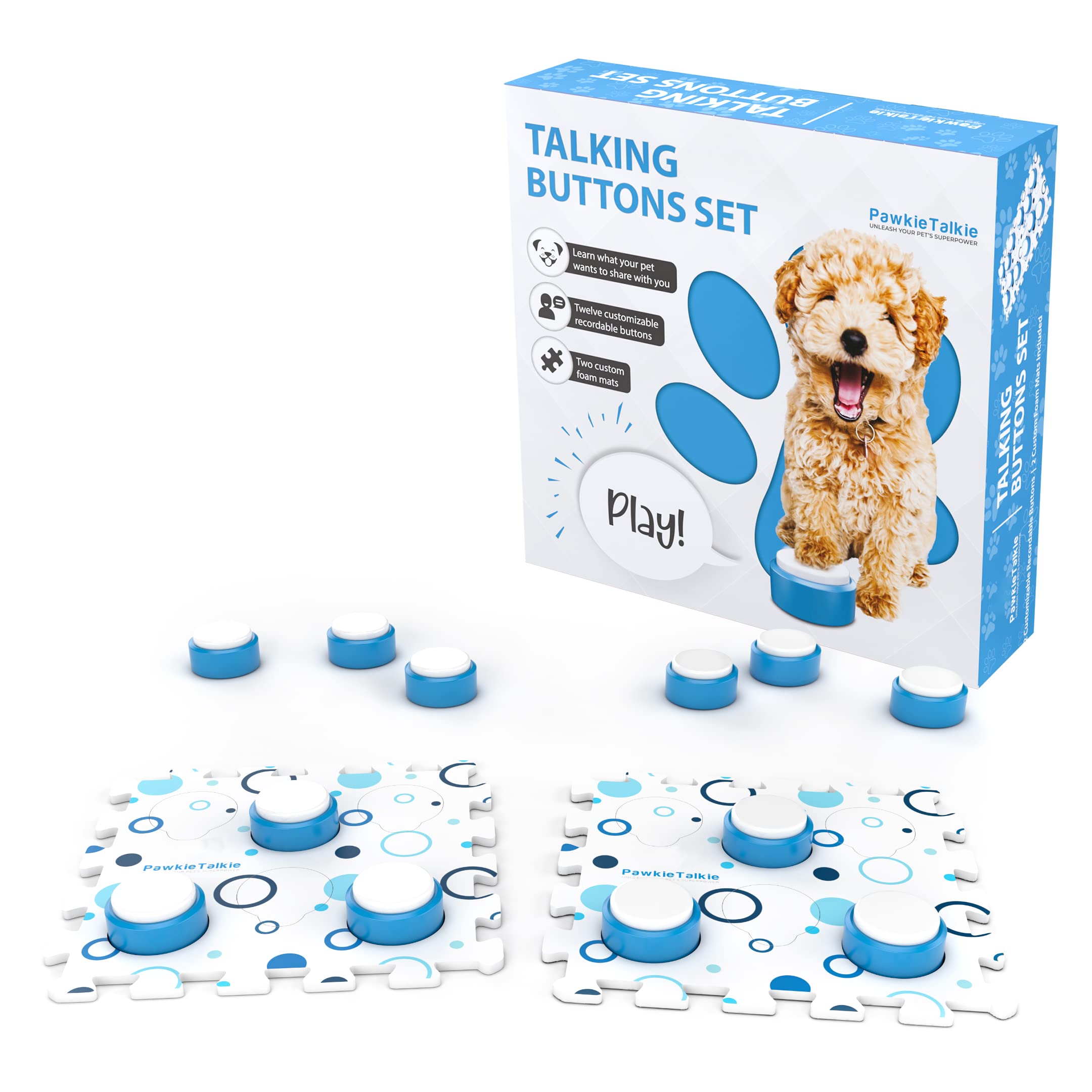 Amazon Com Pawkietalkie 12 Recordable Talking Buttons 2 Custom Mats For Pets With Stickers Recordable Talking Button Set For Dogs Cats Training Buttons For Communication Pet Supplies